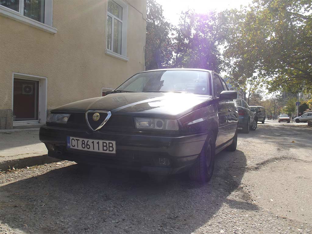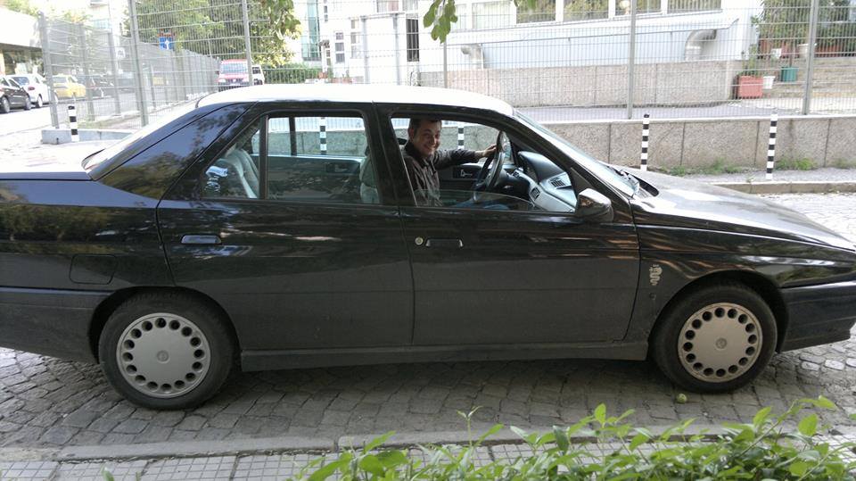 Превъртаме лентата с около десетилетие и моя милост е приет да учи Инженерен Дизайн в ТУ София. С колеги от университета ще ходим да гледаме бегачките на „Божурище“. Колегата ще ни вози с Алфа 155. Досущ като онази в пловдивския каталог. От колоните дъни „Hate me now“ на Nas, а 8 клапановият Туин Спарк звучи като добре настроена цигулка Страдивариус. Бях дотолкова впечатлен от колата, че няколко години по-късно си купих същата такава от същият този колега. Е тогава вече видях „Кон боб яде ли“. Като нов собственик на „macchina sportiva” след само 2 часа, първоначално плахо шофиране по столичните улици се почувствах същински Шумахер, или поне Никола Ларини. На другия ден със съквартиранта ще ходим до университета. Естествено с Алфата. Едва успял да изрека репликата „Тоше, виж кво прай на втора!“ и муцуната на Алфата се заби в задника на една Тойота и водите и изтекоха. Това бойно кръщене беляза целият съвместен жизнен път с първата ми кола. Никой от проблемите които имах с колата не бяха нещо необичайно и неочаквано за автомобил навършил пълнолетие, но аз ги приемах винаги драматично. Първо защото по това време реално не можех да си позволя какъвто и да било автомобил, камо ли „евтина кола за богати хора“ (думи на моя майстор) и второ, защото бях непоправим оптимист и очаквах връзката ни да е безоблачна. Проблемите бяха класически италиански. С първият сняг дръжката на вратата се разпадна в ръцете ми, огледалото за обратно виждане също се предаде след контакт с нечии задни части, а в последствие се оказа че тези огледала са редки и митични като еднорог. Радиото пък се включваше и изключваше само когато си поска, подобно на това в Кристин на Стивън Кинг. Течове на всякакви течности също не бяха рядкост. Всеки път когато вдигнех капака да проверя маслото, десният фар спираше да свети и имаше нуждата от рязък и добре премерен удар за да заработи отново. За капак мой роднина взе колата назаем и скоростната кутия не издържа на неговия стил на шофиране и експлодира по зрелищен начин. Имаше нещо в самият автомобил което провокира всеки който седне зад волана да шофира агресивно. И това усещане ме караше да забравя за всички проблеми изброени по-горе. Реално ако се опитате за дадете цялата газ, ще разберете че това е все пак семеен автомобил ,а не Порше 911. Като начало ще изпитате силен torque steer ,воланът ще се опита да ви счупи ръцете, а предният мост ще се стреми да се откъсне от автомобила. Ако това ви уплаши и върнете рязко газта, задницата внезапно ще олекне и ще се опита да ви изпревари. Всичко това обаче, е лесно за овладяване, тъй като воланът е изключително директен и ви дава тонове информация. При умерено динамично шофиране колата е много послушна и всеки завой доставя огромно удоволствие, двигателят набира обороти с лекота ,има страхотен звук, скоростите са къси, което подобрява ускорението, а предавките влизат с удовлетворяващо щракване.