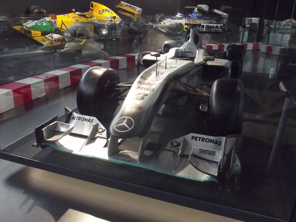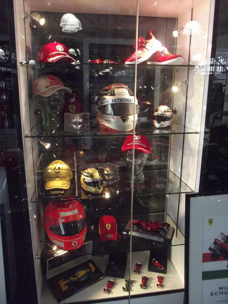Това за шумахерист като мен е равностойно на хадж. Напълно игнорирах десетките Бентлита, Ферарита и Поршета. Същите ги има и в Мюнхенският Motor World, a и отдавна са тривиална гледка по улиците. Колекцията е наистина впечатляваща и включва каски, ръкавици, състезателни екипи, купи, снимки и разбира се болиди. Почти всеки автомобил, който Михаел Шумахер е карал беше там. От Формула Форд и знаменитият зелен Jordan 191 до сребърните стрели от завръщането му с Мерцедес.